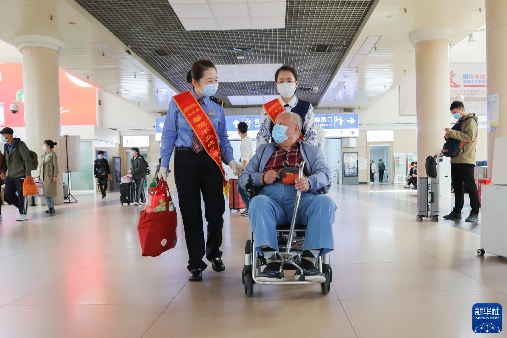 2021年10月15日,刘晓云和大连站馨驰半岛-晓云服务团队成员服务重点旅客。