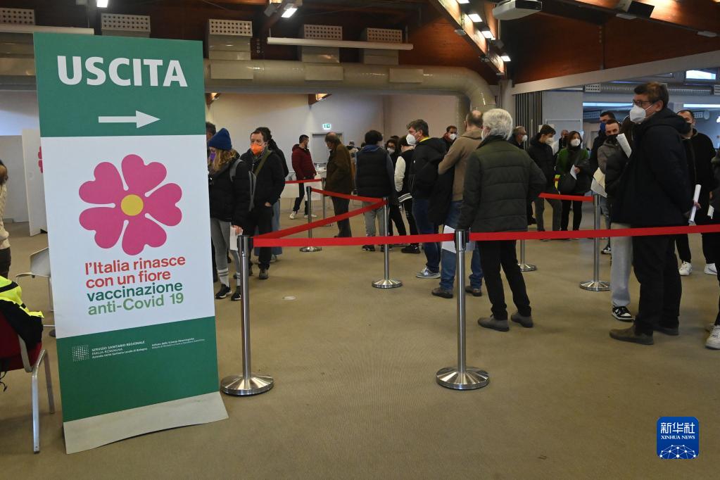 1月16日,人们在意大利博洛尼亚一处新冠疫苗接种中心排队等待接种新冠疫苗。