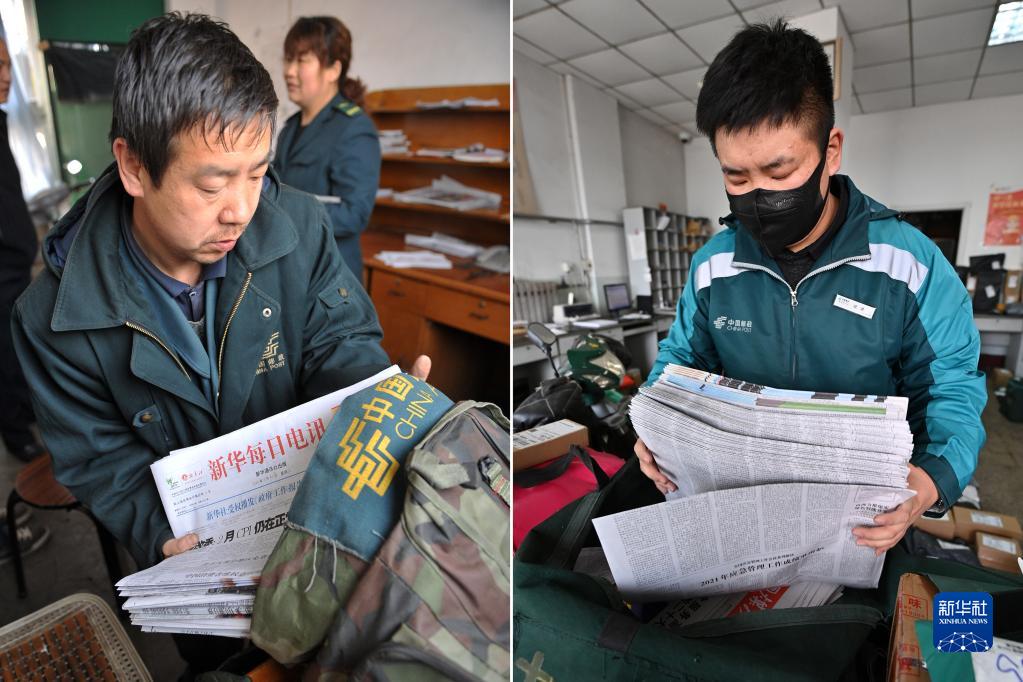 拼版照片:左图为2010年3月16日,王收秋把报刊放进邮包,准备出发送邮件;右图为2022年1月7日,王沄天在整理报刊。
