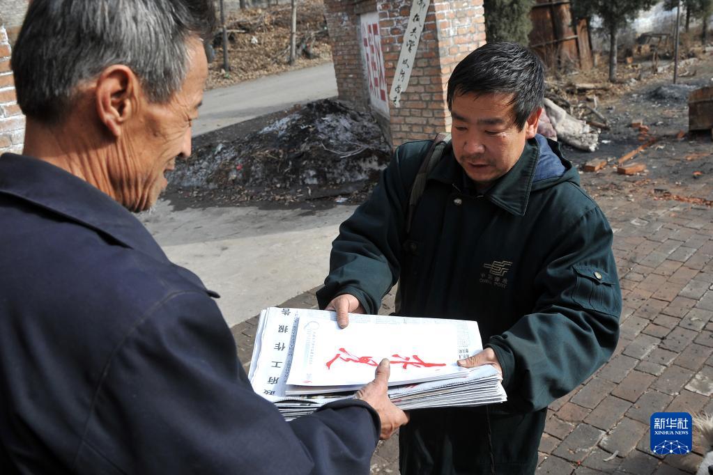 王收秋将报刊送到村民手上(2010年3月16日摄)。