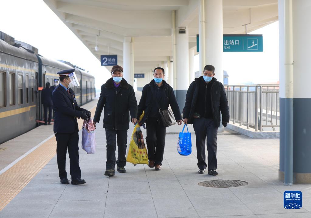 1月15日,农民们在凤凰城站下车准备去凤城市卖掉其他山货。
