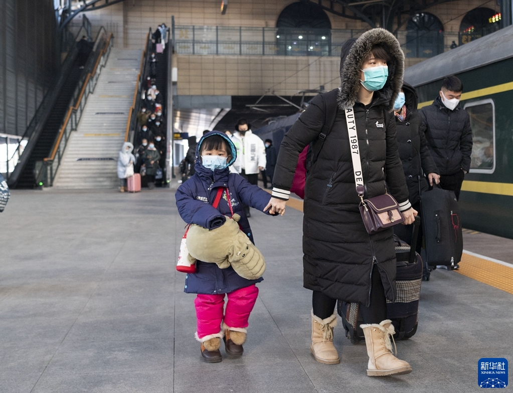 1月17日,乘客在哈尔滨火车站登车。新华社记者 谢剑飞 摄