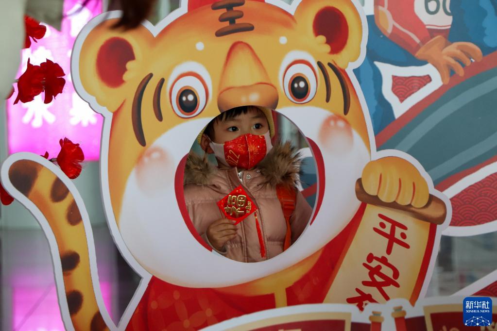 1月17日,一名小旅客在呼和浩特东火车站拍照留念。新华社记者 朱文哲 摄