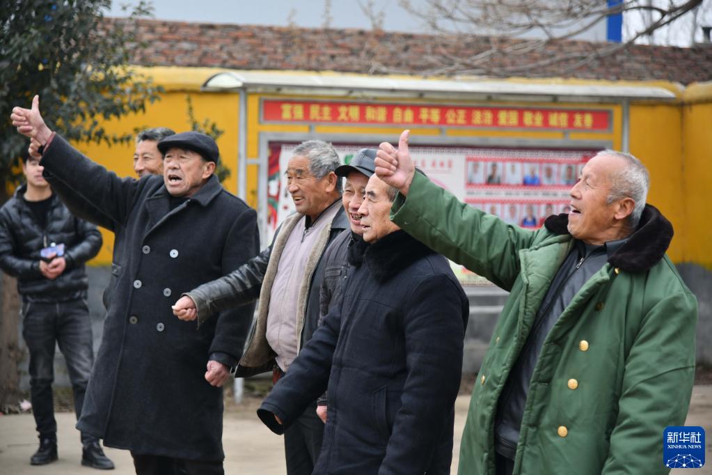1月12日,在山东省莘县张寨镇郝庄村,“大爷帮”的老人们为拍摄短视频进行排练。