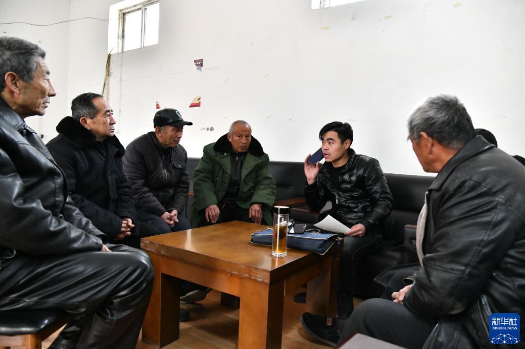 1月12日,在山东省莘县张寨镇郝庄村,郝记朋给“大爷帮”的老人们讲解当天将要拍摄的剧本。