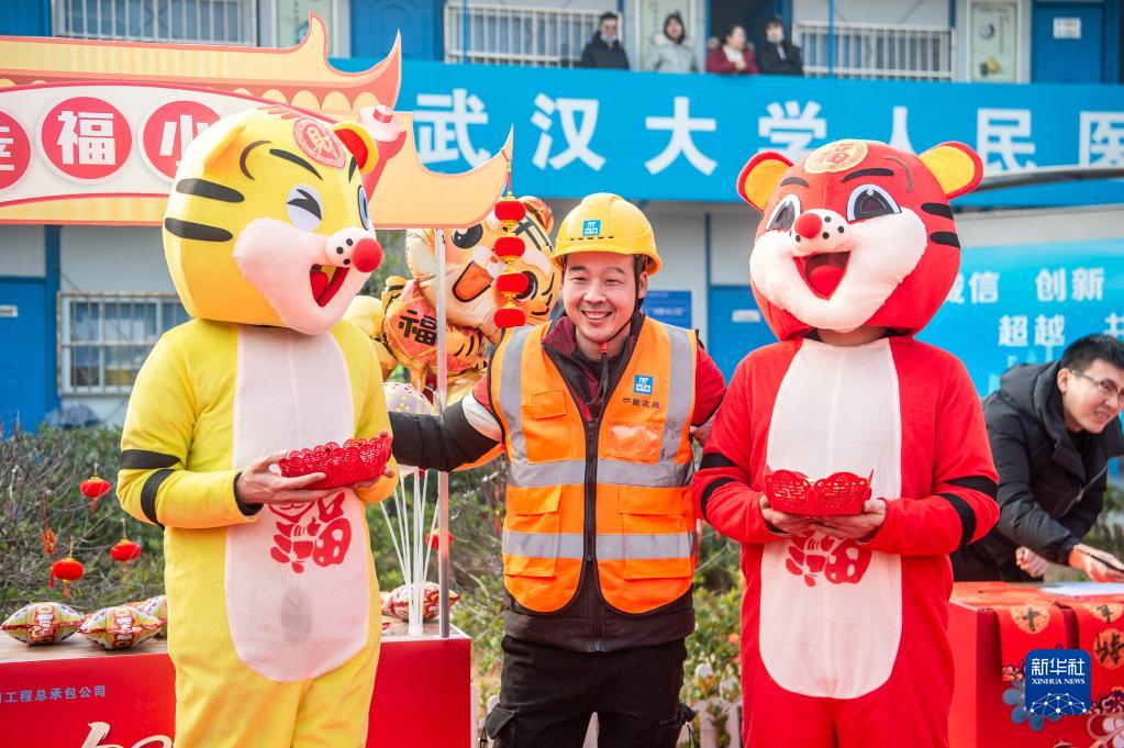 当日,中建三局在武汉大学人民医院洪山院区项目部工地现场举办“新春暖心集市”活动,让在工地坚守的建设者们感受到新春的氛围。