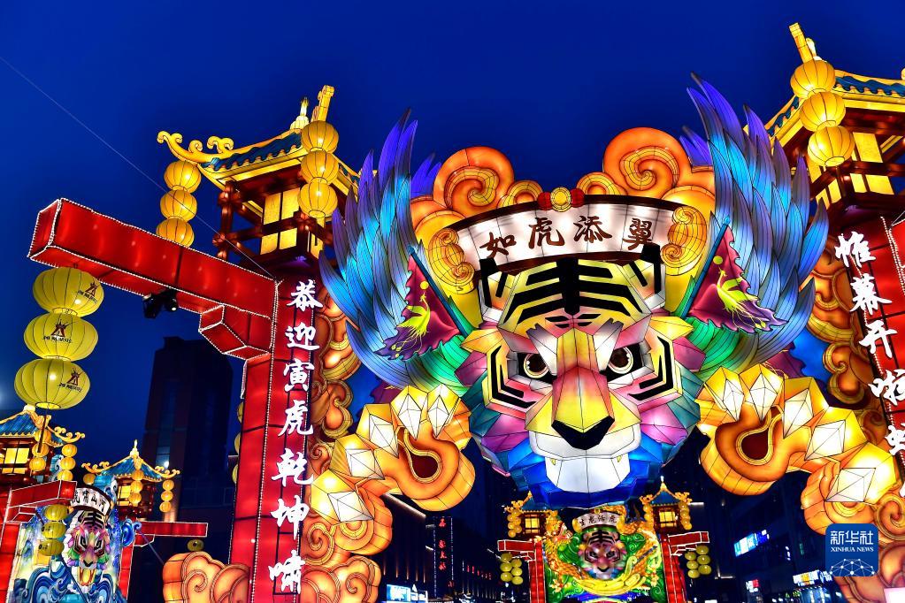 近日,济南市槐荫区印象济南·泉世界的虎年生肖花灯点靓泉城济南夜生活,营造浓浓的节日气氛。