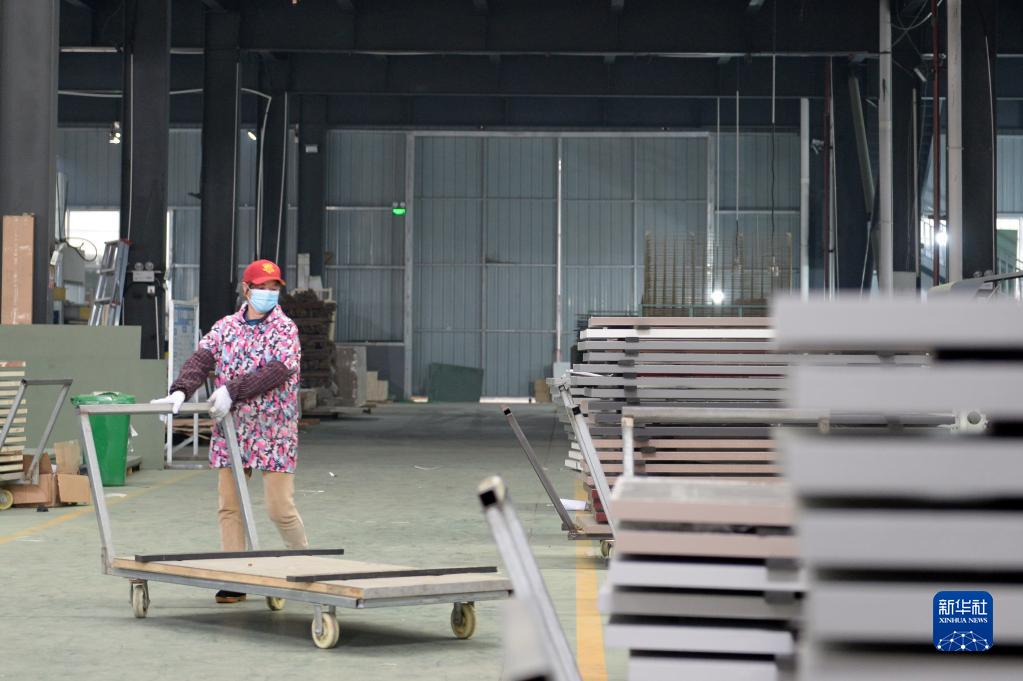 2021年12月31日,一名工人在长沙市煤炭坝镇一家门业企业工作。新华社记者 陈振海 摄