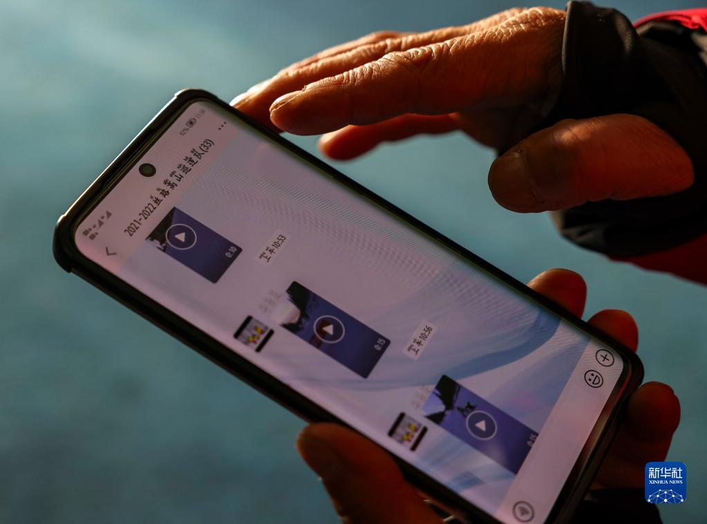 塔里哈提·散塔依在查看微信工作群内同事汇报的巡道信息(1月10日摄)。