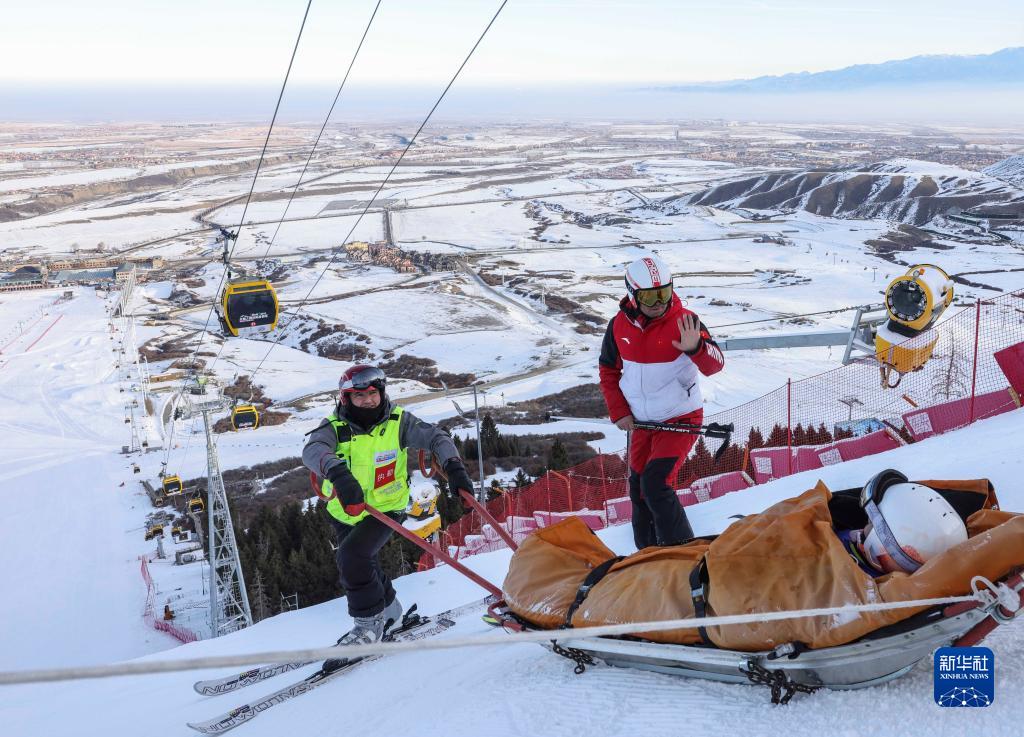 塔里哈提·散塔依(中)在演练中与“被救者”进行沟通(1月11日摄)。