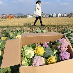 近日,浙江省诸暨市枫桥镇杜黄新村的彩色西兰花迎来收获季,吸引游客前来观赏、采摘。2021年,杜黄新村和浙江省农科院合作,引进彩色西兰花,包含黄白绿紫等多种颜色。村里推出彩色西兰花“花束”等产品,受到市场青睐。