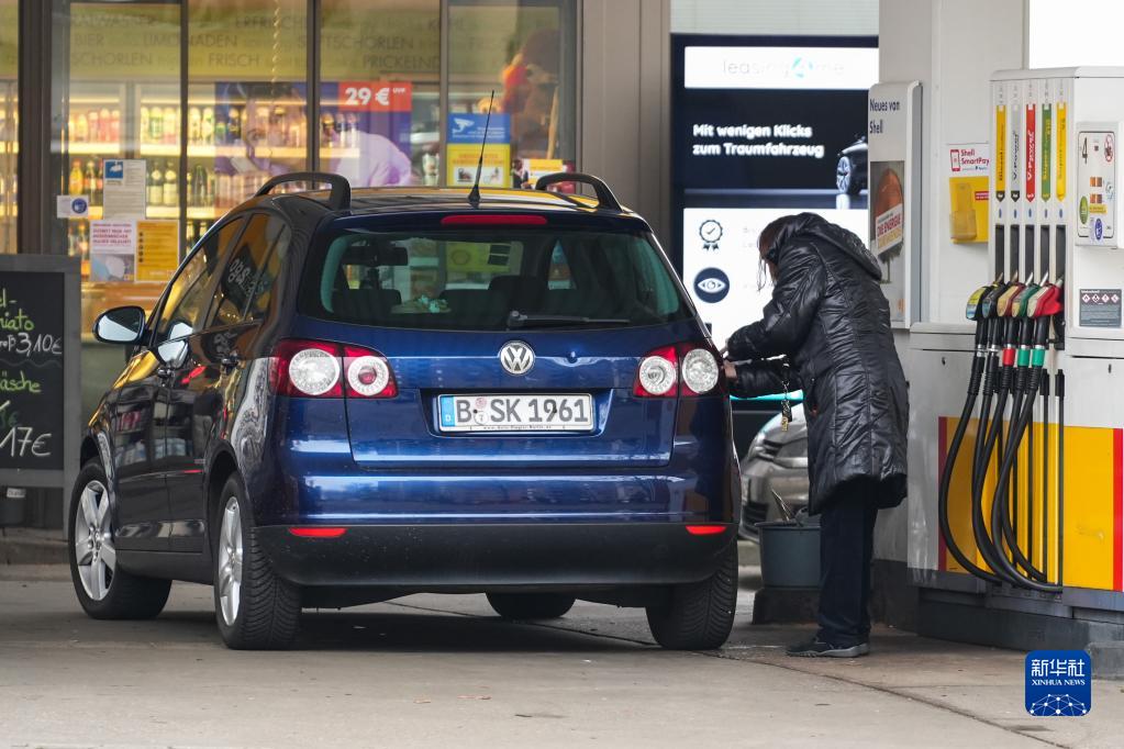 1月19日,在德国首都柏林,一名顾客在一座加油站为车辆加油。