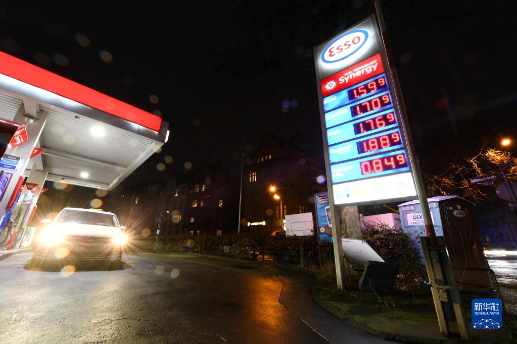 这是1月19日在德国法兰克福拍摄的一家加油站。