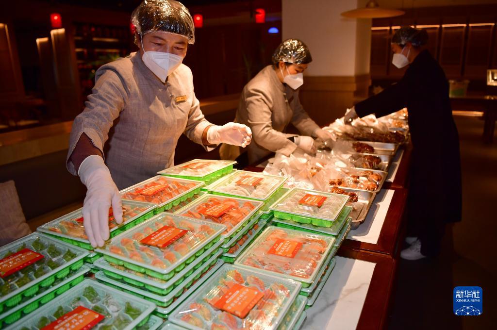 1月20日,在位于西安市曲江新区的西安饭庄大唐不夜城店内,工作人员在整理食品。新华社记者 邵瑞 摄