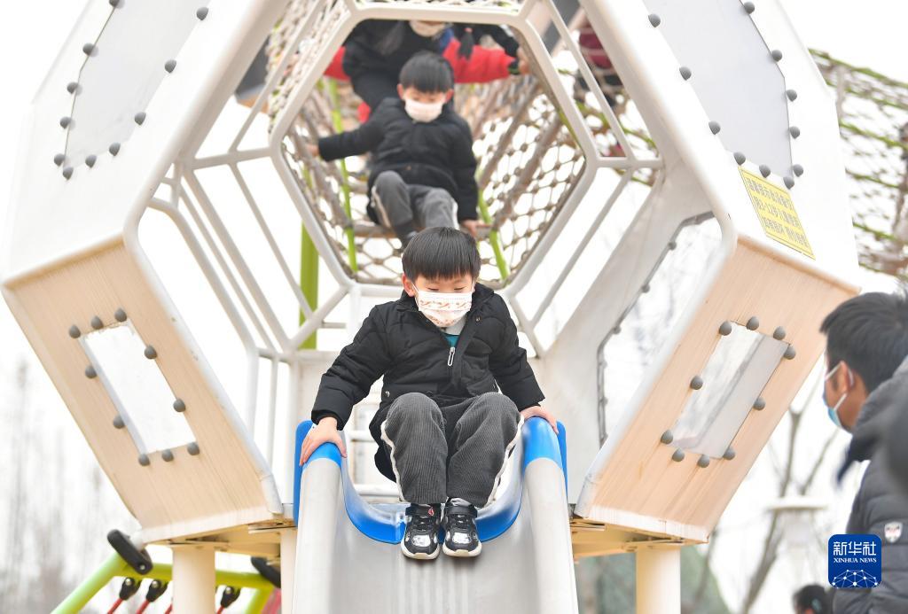 1月20日,小朋友在西安浐灞生态区一处公园玩耍。新华社记者 张博文 摄