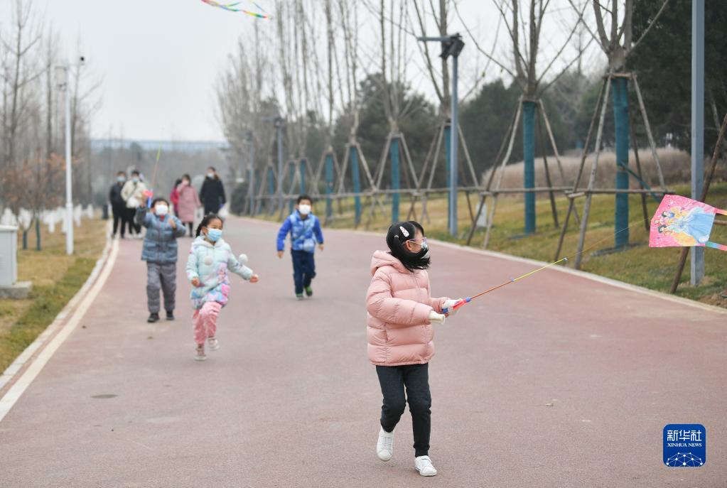 1月20日,小朋友在西安浐灞生态区一处公园内玩耍。新华社记者 张博文 摄