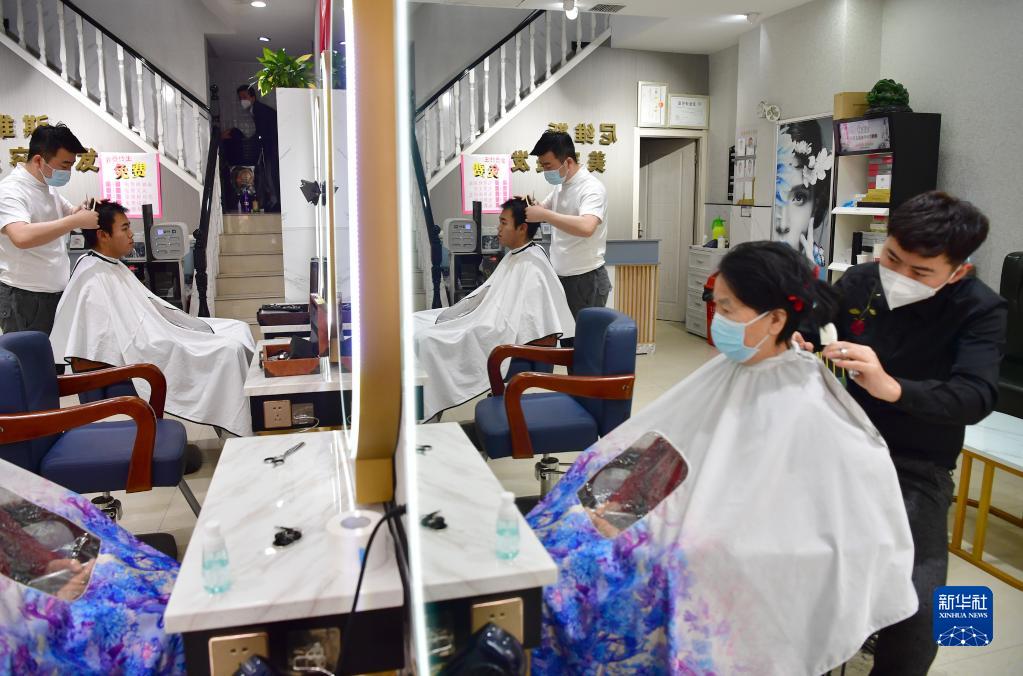 1月20日,在西安市曲江新区一家理发店内,理发师在为市民理发。新华社记者 邵瑞 摄