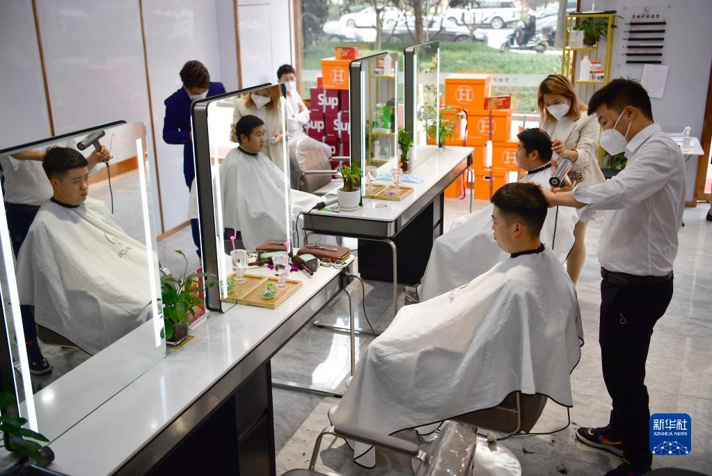 1月20日,在西安市曲江新区一家理发店内,理发师在为市民理发。新华社记者 邵瑞 摄