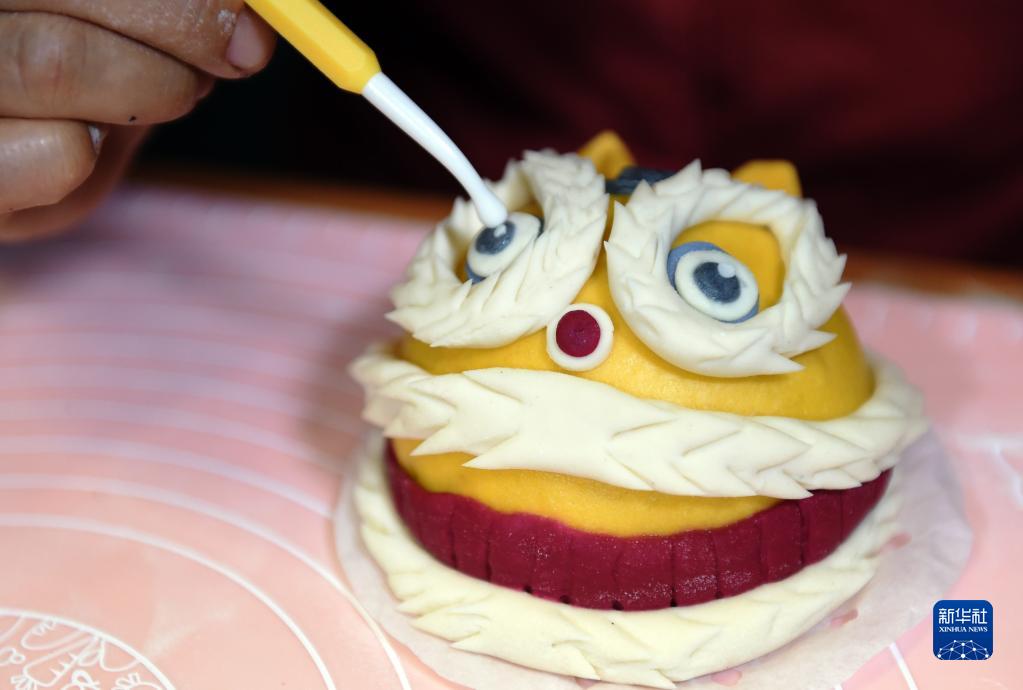 黄山市徽州区西溪南镇的居民在制作虎头花馍(1月19日摄)。新华社记者 周牧 摄