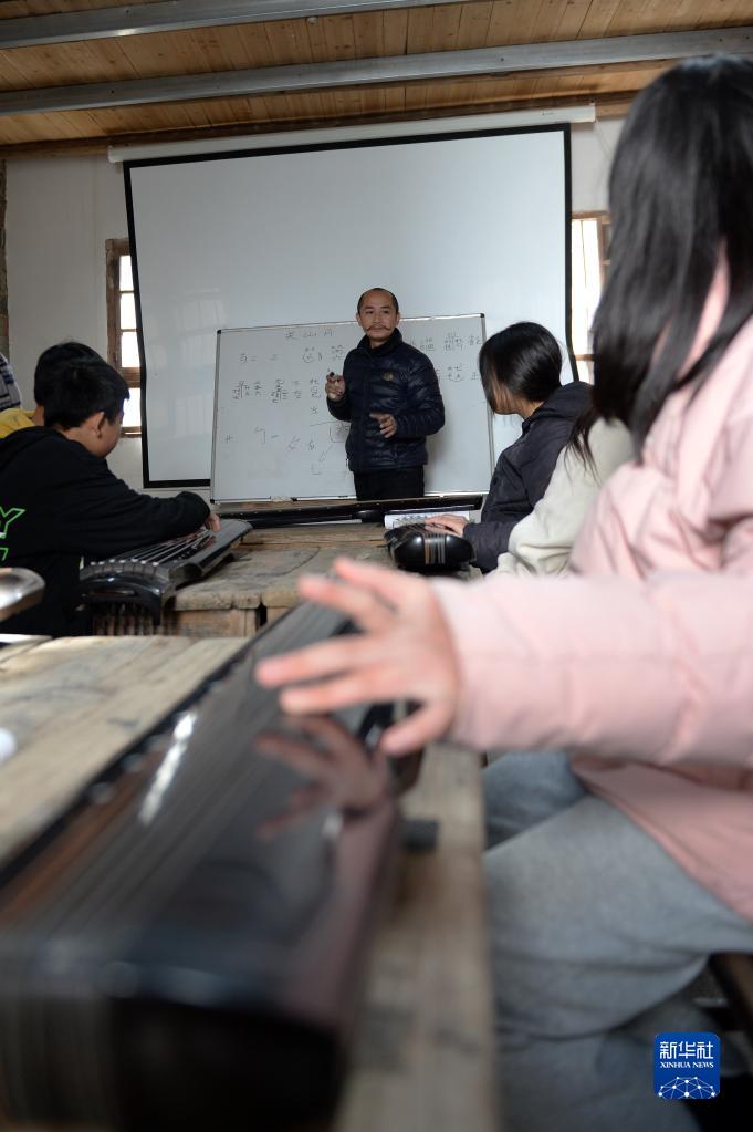 1月19日,刘休(中)在给小朋友们上古琴课。新华社记者 陈振海 摄