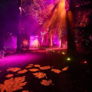 1月20日,在比利时布鲁塞尔附近的拜加登城堡,观众欣赏灯光装置。