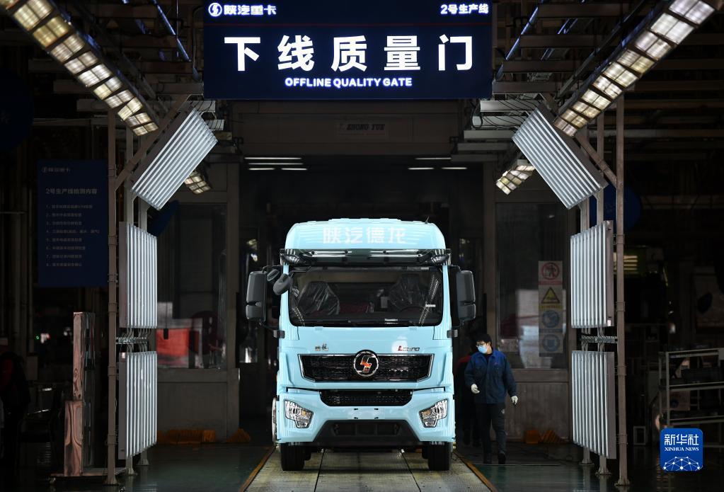 1月20日,工作人员在陕西汽车控股集团有限公司总装车间验收一辆装配完毕的陕汽重型卡车。