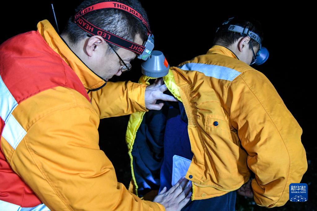 1月21日凌晨,为了抵御夜间寒冷,工作人员互相帮对方贴上“暖宝宝”。