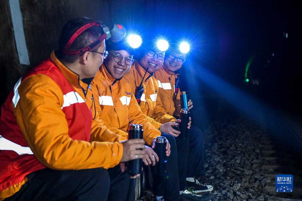 春运期间,高铁线检班组增加了巡检频次,每到线路运行的“天窗期”,经常可见工作人员依靠头灯在夜幕中穿行,及时排查隧道中可能出现的各种隐患,确保每天行经隧道的80多趟列车安全运行。