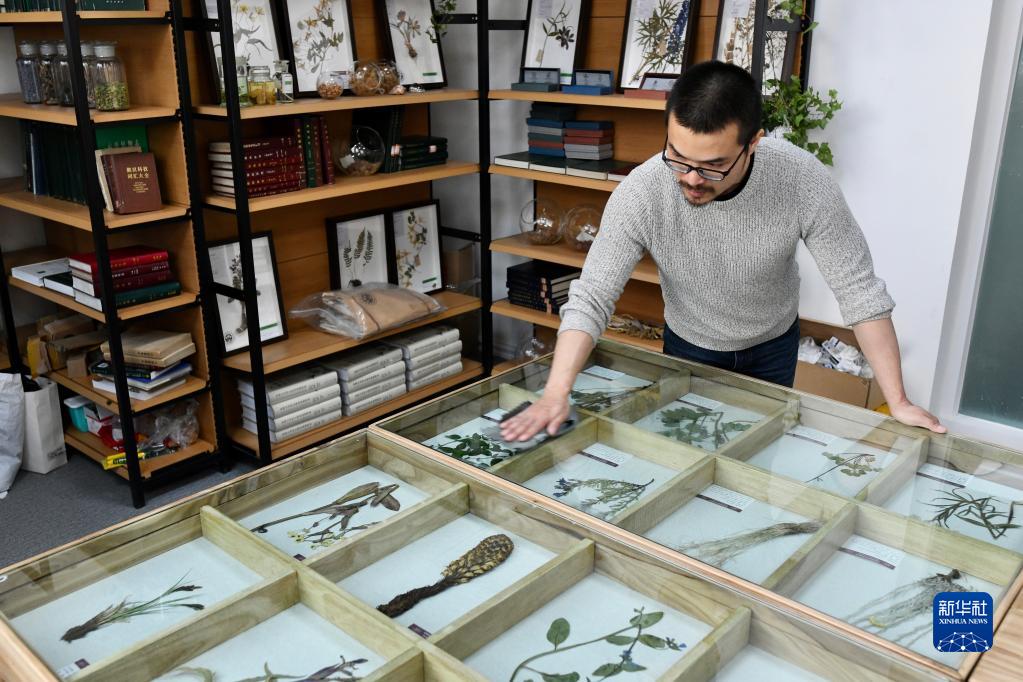 杨宗宗在工作室摆放擦拭自己制作的植物标本(2022年1月16日摄)。新华社记者 王菲 摄