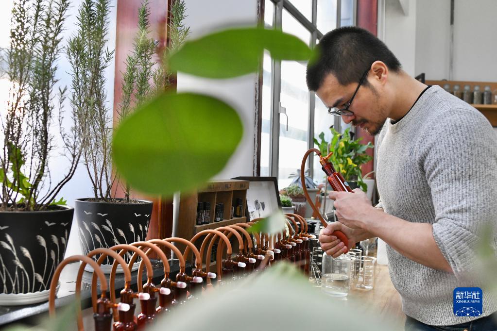杨宗宗在工作室查看植物气味标本(2022年1月16日摄)。新华社记者 王菲 摄