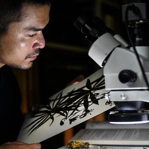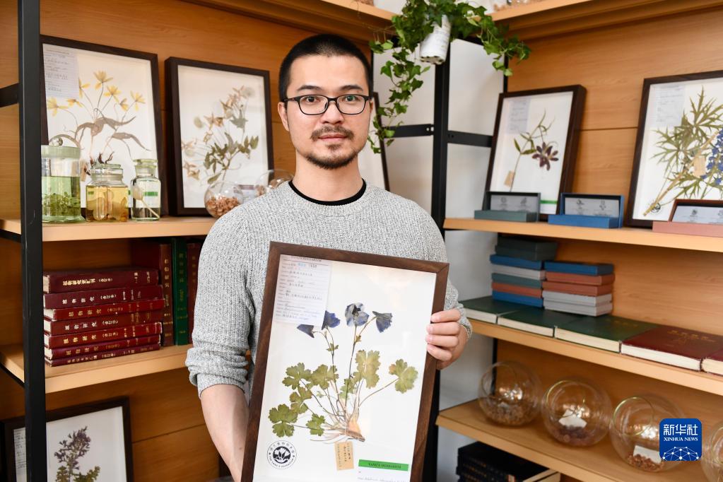 杨宗宗在工作室展示自己采集制作的植物标本(2022年1月16日摄)。新华社记者 王菲 摄