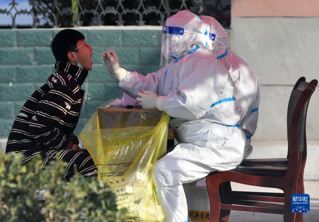 在禹州市无梁镇曹楼村,医护人员在为村民进行核酸采样(1月15日摄)。