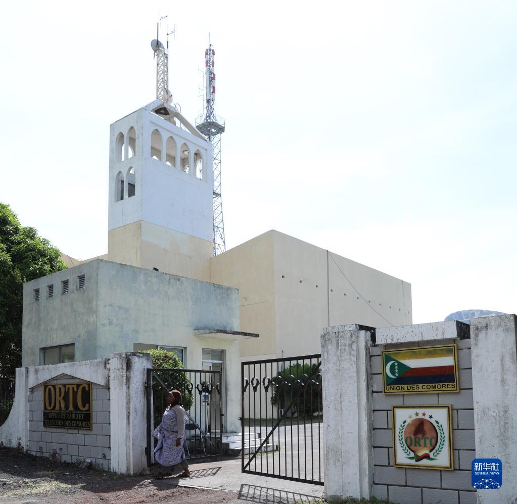 这是1月12日在科摩罗首都莫罗尼拍摄的中国援建的科摩罗广播电视大楼。