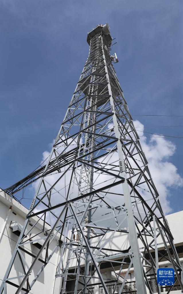 这是1月12日在科摩罗首都莫罗尼拍摄的中国援建的广播电视塔。