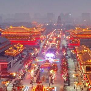 春节临近,西安市大唐不夜城点亮璀璨夺目的灯光,迎接新春佳节的到来。