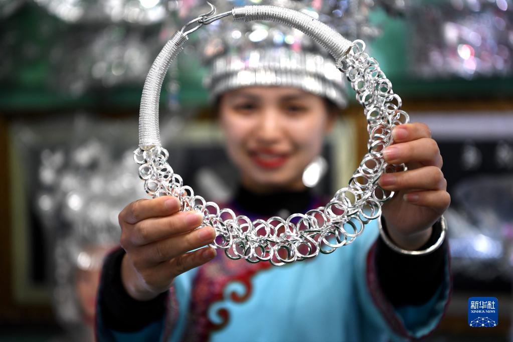 春节将至,贵州省榕江县古州镇老街的银饰店生意红火,当地少数民族群众纷纷前来购买饰品,喜迎新春佳节。