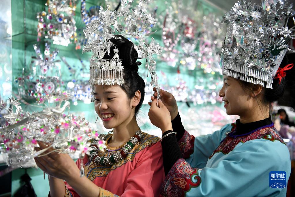 春节将至,贵州省榕江县古州镇老街的银饰店生意红火,当地少数民族群众纷纷前来购买饰品,喜迎新春佳节。