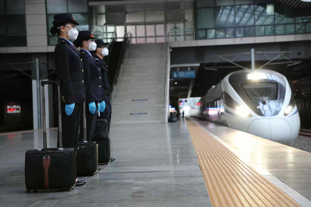 1月20日,樊思萱组织班组乘务员在福州火车站的站台列队接车。