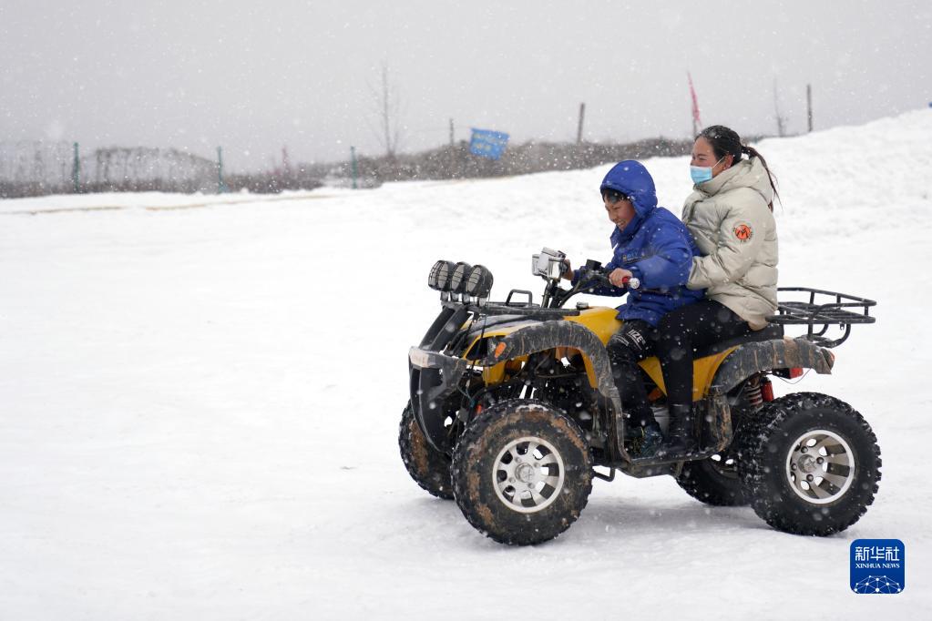 1月21日,游客在河北省临城县崆山白云洞滑雪场体验雪地摩托车。