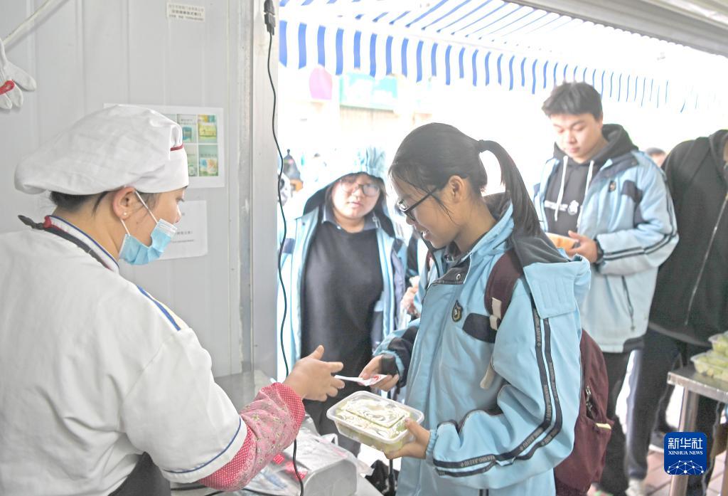 一名学生在广西南宁市第三中学食堂凭甜品兑换券免费兑换水果(1月20日摄)。