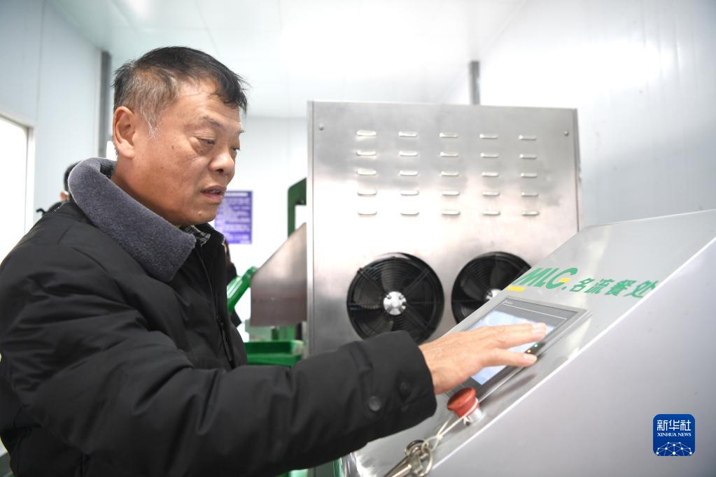 工作人员在广西南宁市第三中学厨余垃圾处理站操作机器作业(1月20日摄)。