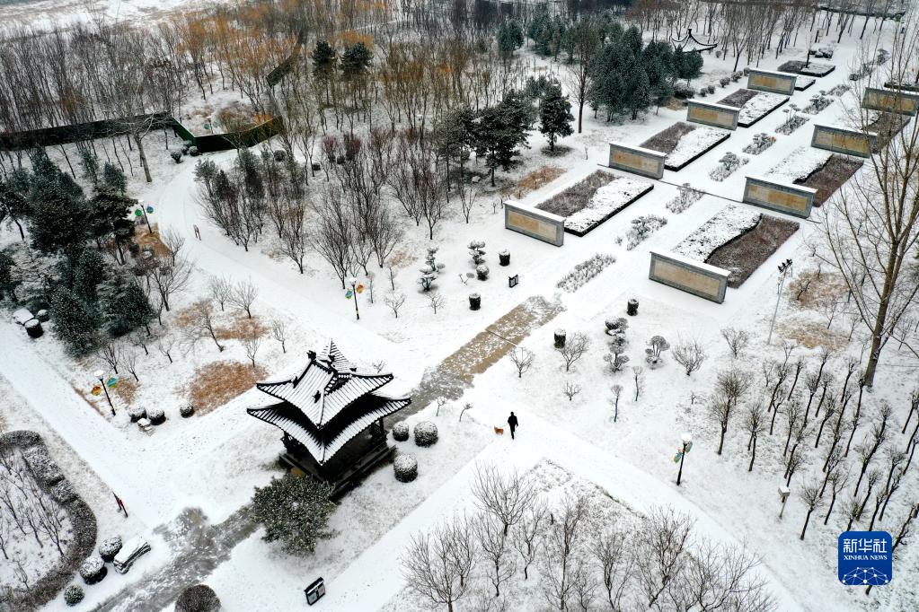 这是1月22日拍摄的河北省石家庄市栾城区柴武台公园雪景(无人机照片)。