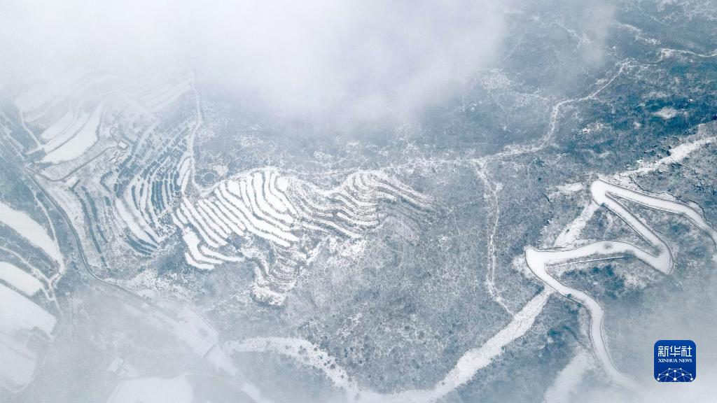 这是1月22日在河北省临城县天台山景区拍摄的雪后太行山景观(无人机照片)。