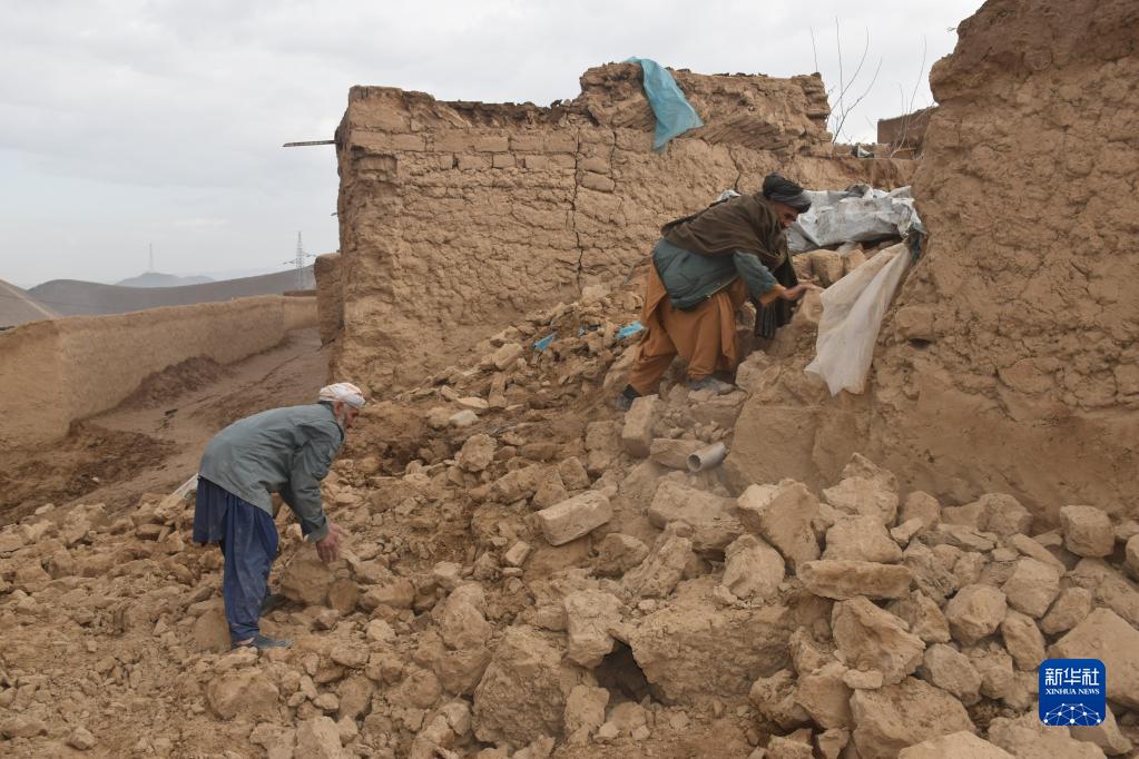 1月18日,在阿富汗西部巴德吉斯省卡迪斯地区,当地居民站在房屋废墟中。