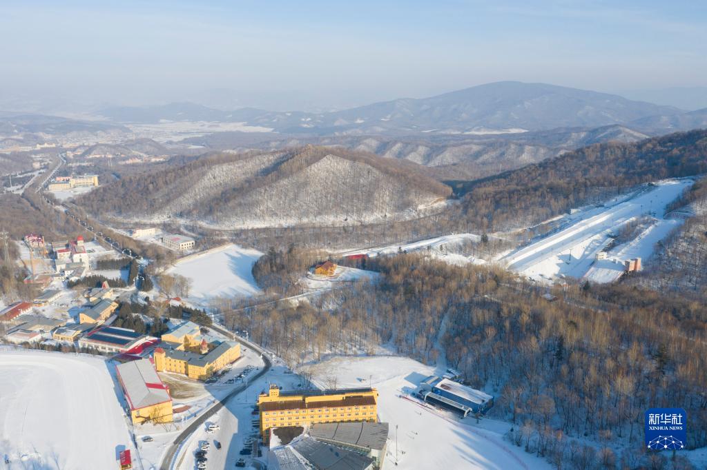 1月21日拍摄的黑龙江省亚布力滑雪旅游度假区一角(无人机照片)。