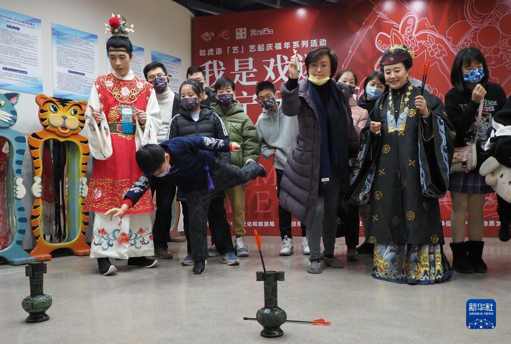 当日,一场别开生面的迎新春文化活动在上海市长宁区北新泾社区文化活动中心举行,社区居民们听昆曲、猜谜、投壶……几名居民还扮成小说《红楼梦》里的人物,让大家“沉浸式”体验了一回小说里贾府过年游园的热闹场景。