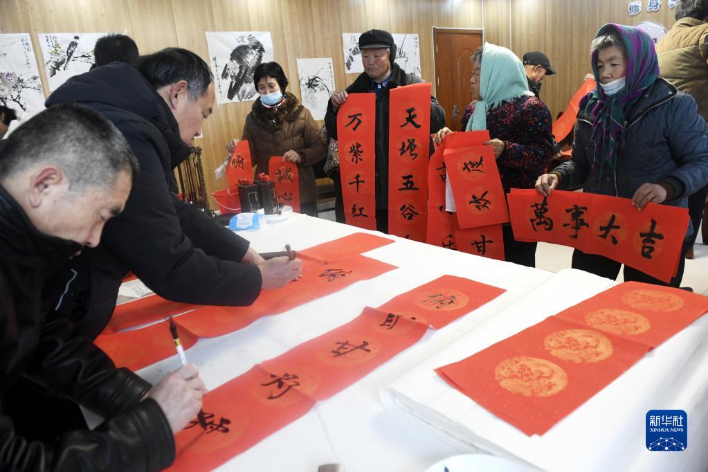 春节将至,山东省滨州市沾化区利国乡南五社区的村民们跳广场舞、写春联、剪窗花……在浓浓年味儿中迎接新春佳节。