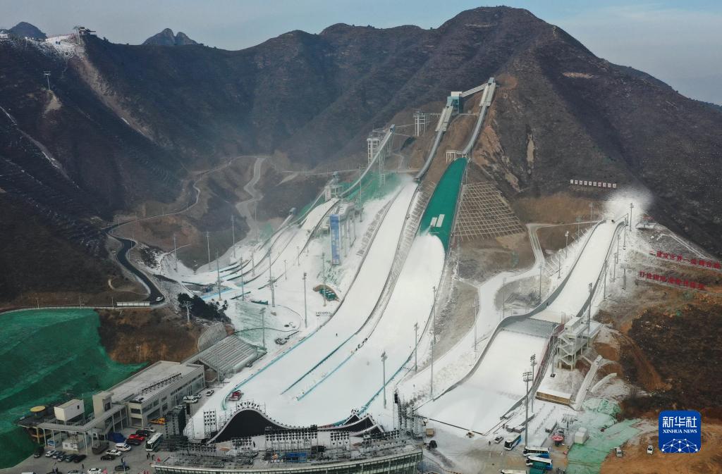 这是河北省涞源国家跳台滑雪训练科研基地(2021年12月23日摄,无人机照片)。