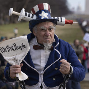 1月23日,人们在美国首都华盛顿参加游行活动,反对新冠疫苗强制令等多种防疫措施。
