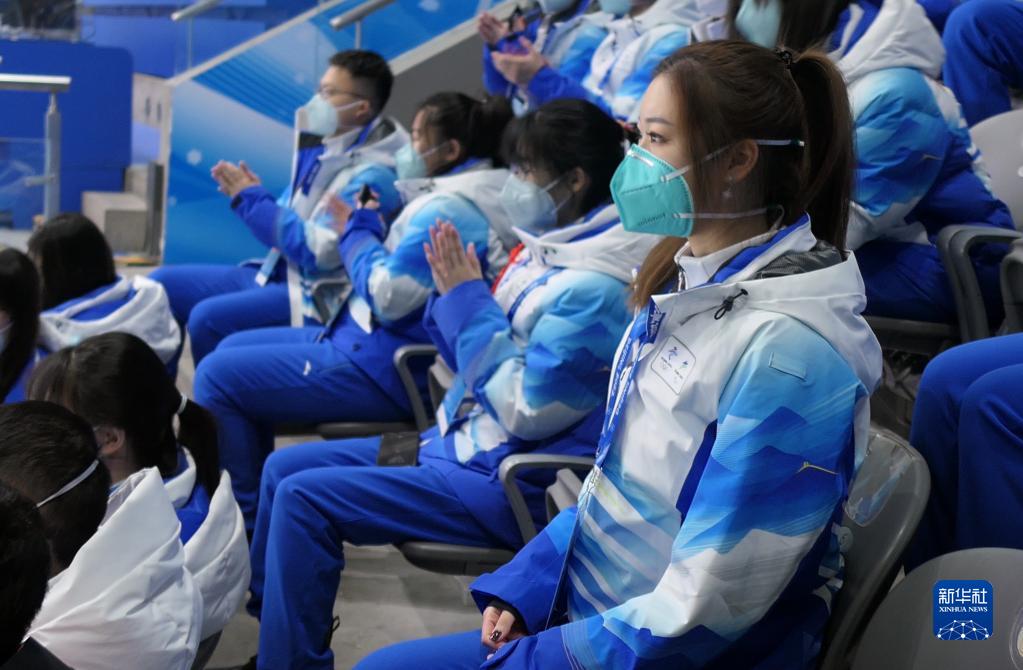 在国家体育馆,陈博(前)参与冬奥志愿服务培训(1月24日摄,手机照片)。新华社发
